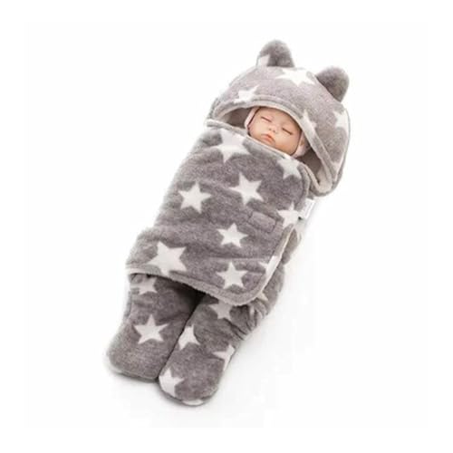 Bumtum 3-in-1 Hooded Baby Soft Blanket Wrapper| Swaddle for New Born Babies(Boys & Girls) 0-6 Months Travel-Friendly Star Printed (Grey)