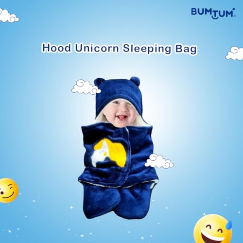 Bumtum 3-in-1 Hooded Baby Soft Blanket Wrapper| Swaddle for New Born Babies(Boys & Girls) 0-6 Months, Travel-Friendly, Unicorn Print (Navy)