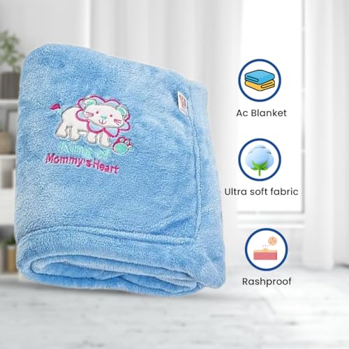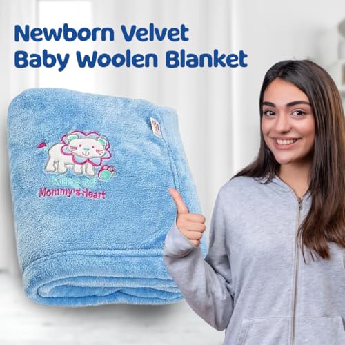 HomeBabyNurseryBaby Blankets & QuiltsBUMTUM Super Soft New Born Baby Blanket | Wrapper Sheet for Baby Boys & Baby Girls | Lion Print, Lightweight | Super Comfortable (100cm x 80cm, Sky Blue)