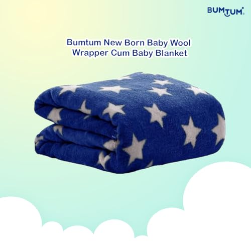 HomeBabyNurseryBaby Blankets & QuiltsBumtum Super Soft New Born Baby Blanket | Wrapper Sheet for Baby Boys & Baby Girls | Star Pattern, Lightweight | Super Comfortable (100cm x 75cm, Navy)