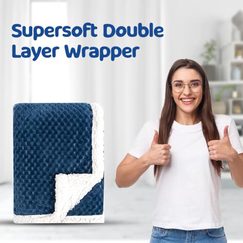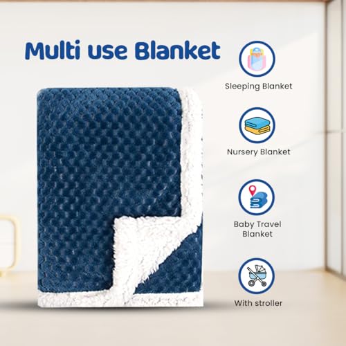 HomeBabyNurseryBaby Blankets & QuiltsBumtum Super Soft New Born Baby Double Layer Blanket | Wrapper Sheet for Baby Boys & Baby Girls | Lightweight | Super Comfortable (100cm x 80cm, Navy)