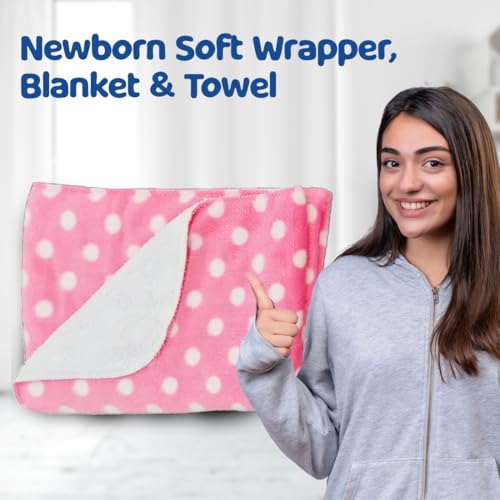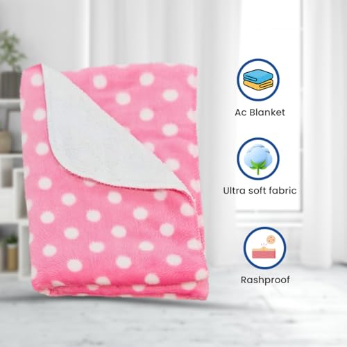 HomeBabyNurseryBaby Blankets & QuiltsBumtum Super Soft New Born Baby Polka Dot Blanket | Wrapper Sheet for Baby Boys & Baby Girls | Lightweight | Super Comfortable (100cm x 75cm, Pink)