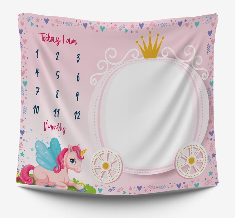 Custom Catch Monthly Milestone Blanket | 1 to 12 Months | Best for Newborn Boy & Girl Multicolor Cotton Skin Friendly Count 1