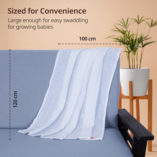 LuvLap is committed to your babys comfort and joy. LuvLaps range of Baby Swaddles gives your newborn a snug cozy womb-like feeling! Made of premium cotton muslin the swaddles are breathable prewashed ultra-soft and softer with every wash. Free from harmful chemicals safe and irritant-free for your baby's most sensitive and tender skin. This is lightweight perfectly sized for swaddling and can serve multiple uses - burp cloth towel stroller cover play mat nursing cover etc.