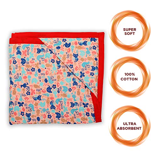 LuvLap Cotton Hooded Wrapper, Warm & Soft, Blanket, Quilt, for New Born Baby to 3 Year old, Pink & Red Cat Print, 75cmx75cm