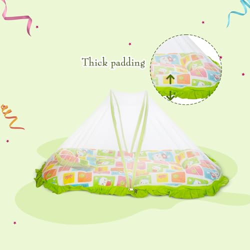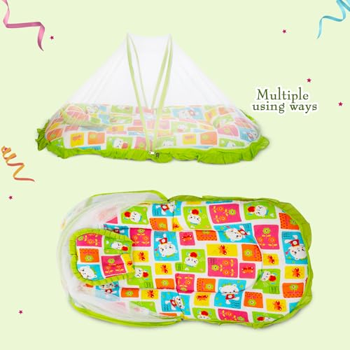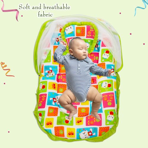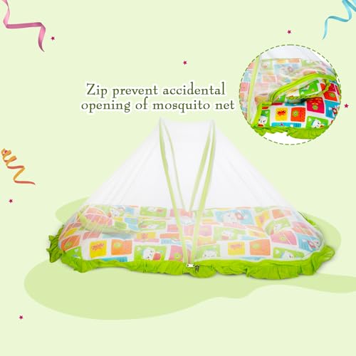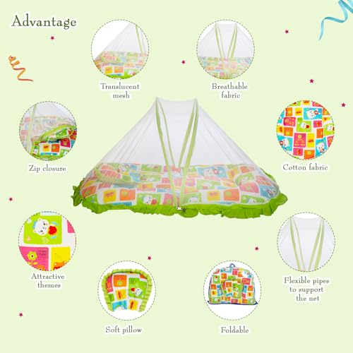 Mee Mee Baby Mattress Set with Mosquito Net and Pillow (Green) (MM-1429 B) (599.0mm L X 132.0mm W)