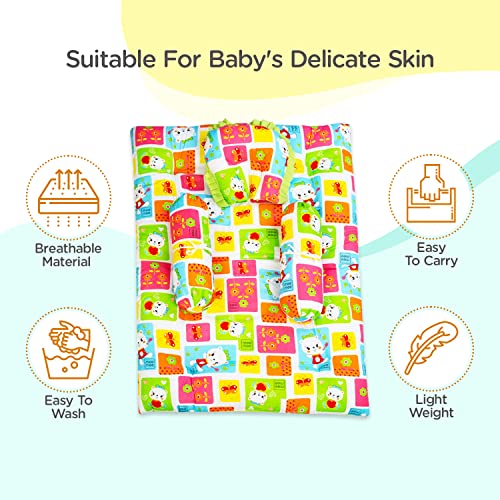 Mee Mee Baby Bedding Set/Baby Bedding Mattress Set/Thick Mattress, Neck Pillow, Baby Bedding for New Born, 0M+, Baby Sleeping Bed (Green)