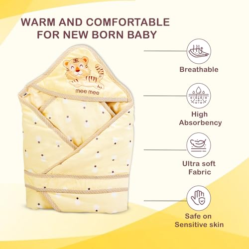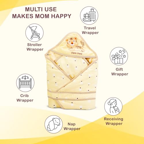 Parents can now comfortably carry their precious babies with Mee Meeâs baby wrappers. These gently cover baby from head to toe and make him feel secure and comfy all through early infanthood. Made from premium quality fabrics each piece creates a covered comfortable and warm cocoon for baby from head to toe. Each carry nest/wrapper enables you to carry your baby safely and protectively in your arms in the house while going for walks in parks and gardens and even while travelling.