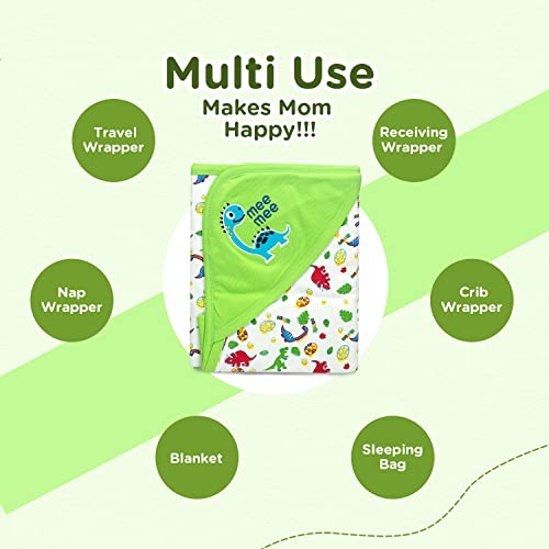 HomeBabyNurseryBaby Blankets & QuiltsMee Mee 100% Soft Cotton Hooded Baby Wrapper Cum Warmer, Blanket with Hood for New Born Baby 0 to 6 Months (Green)