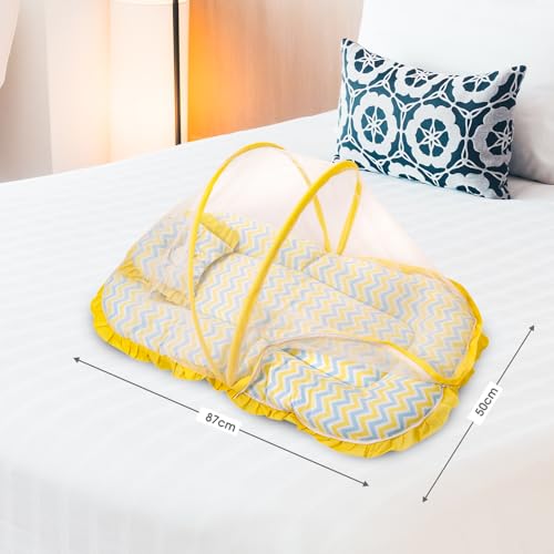 Mee Mee Cushioned Baby Mattress Set with Mosquito Net and Pillow - Zigzac