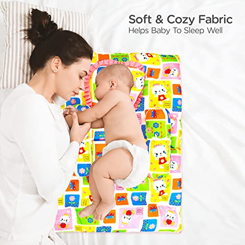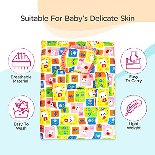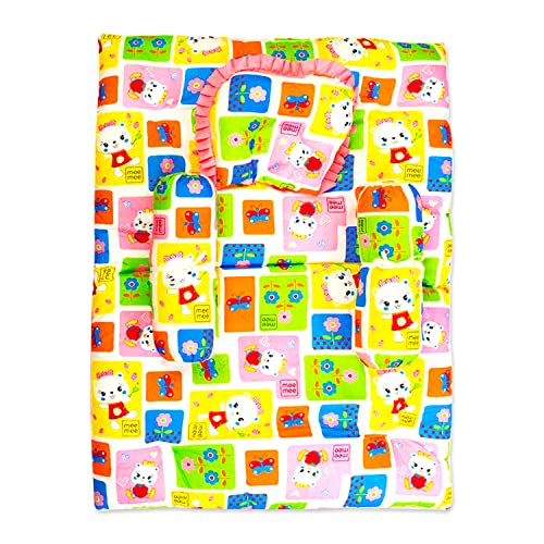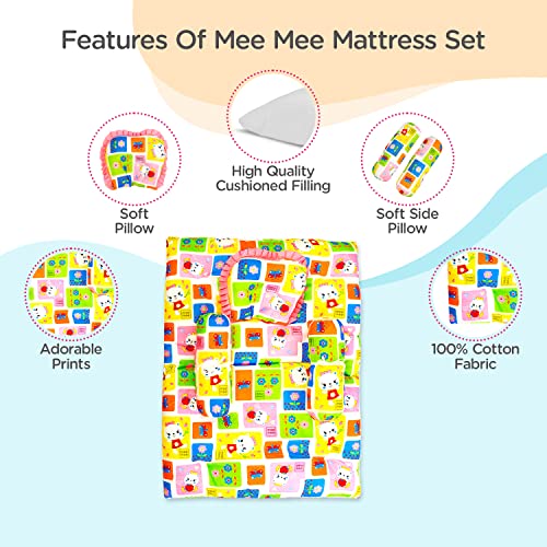 Sleeping is one of the most important activities for your baby till they grow up apart from eating and playing. Mee Mee Baby Mattress Set with Pillows helps him sleep like a baby should- restful and deep. Made with premium fabric the mattress creates a cozy little cocoon for your baby to sleep in. Foldable lightweight and compact this mattress can easily be taken with you when you're travelling with the little one.