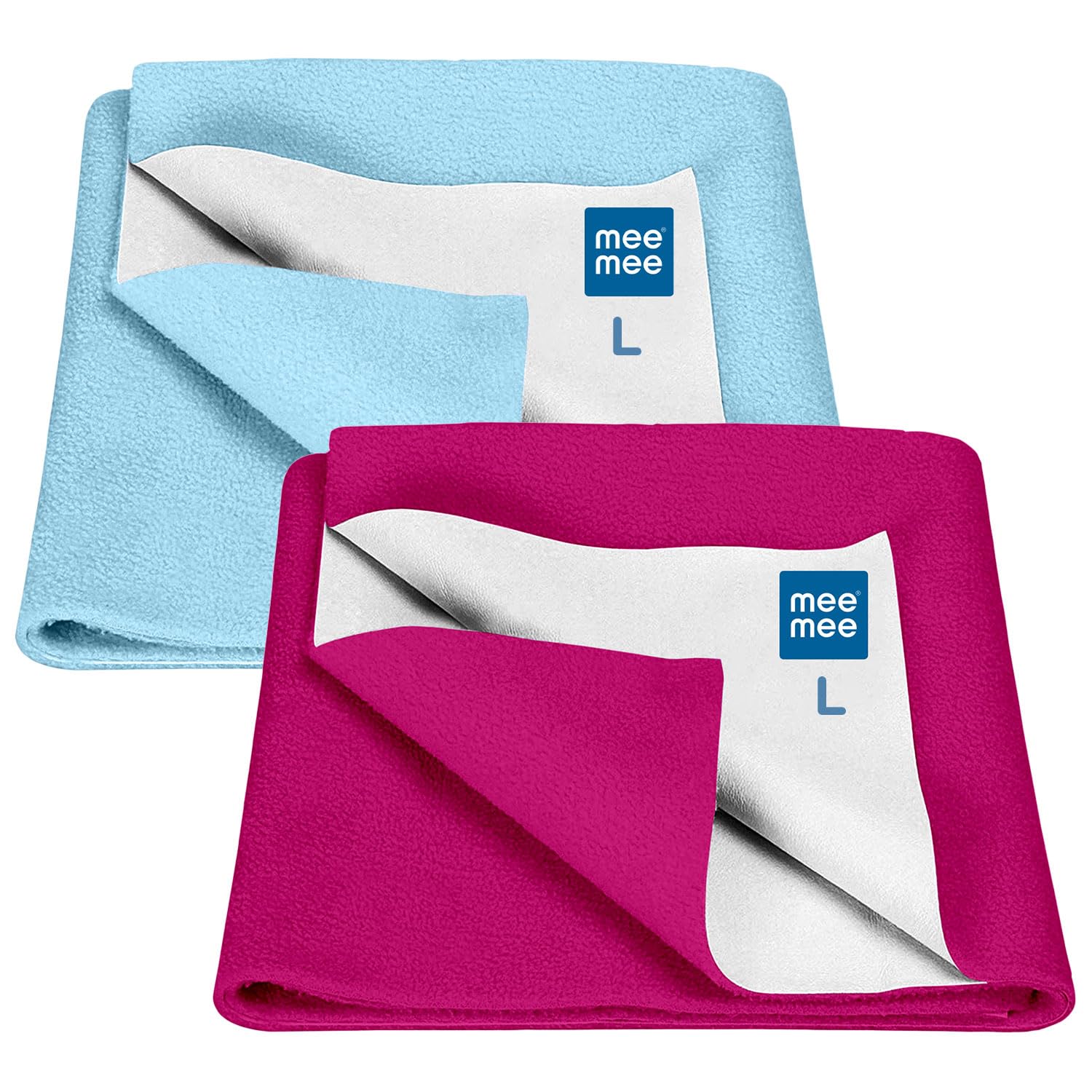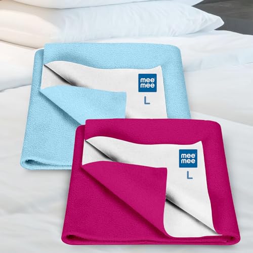 Mee Mee Instadry Anti-Piling Fleece Extra Absorbent, Quick Dry Sheet for New Born Babies, Cotton Bed Protector Mattress, Reusable Waterproof Baby Cot Sheet for Infant, 0 to 36 Month, 140x100cm (Pink)