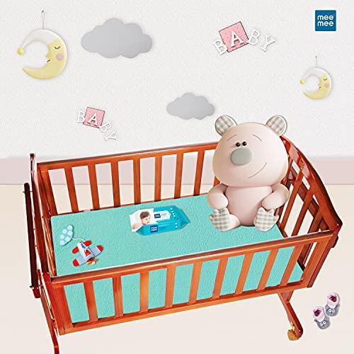 Mee Mee Instadry Cotton Bed Protector Mattress Extra Absorbent, Breathable, Soft and Gentle, Reusable Waterproof Quick Dry baby Cot sheet for Toddler Infant, 0 to 36 month, 140x100cm (Pink)