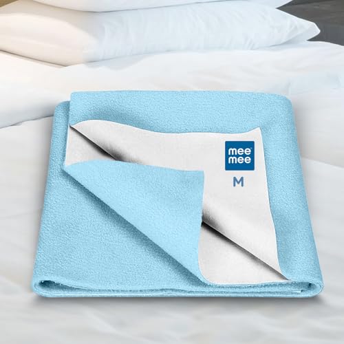 Mee Mee Instadry Cotton Bed Protector Mattress | Ultra-Absorbent Quick-Dry Sheet for Newborns, Soft & Breathable, Reusable Waterproof Cot Sheet for Toddlers, Skin-Friendly- 140x220cm (Blue)