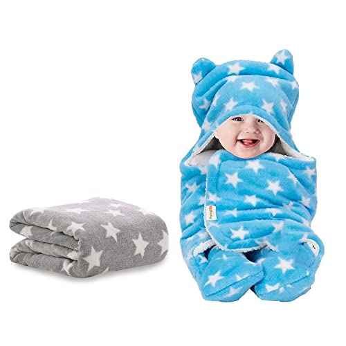 HomeBabyNurseryBaby Blankets & QuiltsOYO BABY Baby Blanket New Born Babies Super Soft Baby Combo Wrapper Baby Sleeping Bag for Baby Boys, Baby Girls | All Season | Sleeping Bag | Nursing Baby Gifts (Grey, Blue Star Printed)