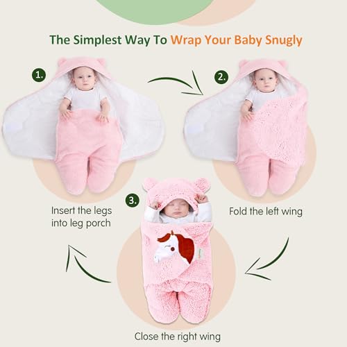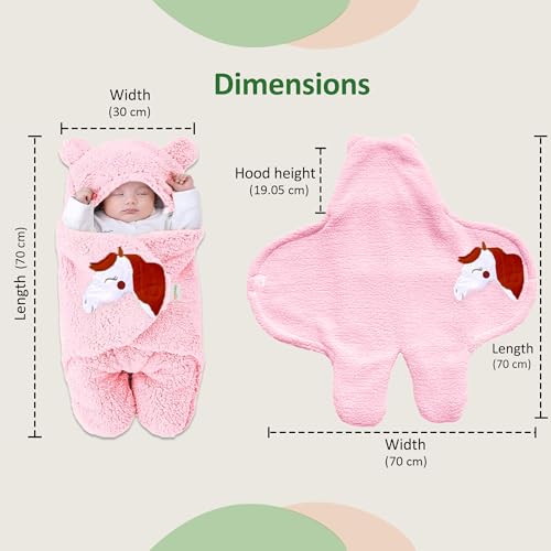 OYO BABY Fleece Baby Blankets New Born Pack of Hooded Supersoft Wearable Unicorn Wrapper Cum Baby Sleeping Bag for Babies (70 Cm X 76 Cm 0-6 Months) Lightweight Pink