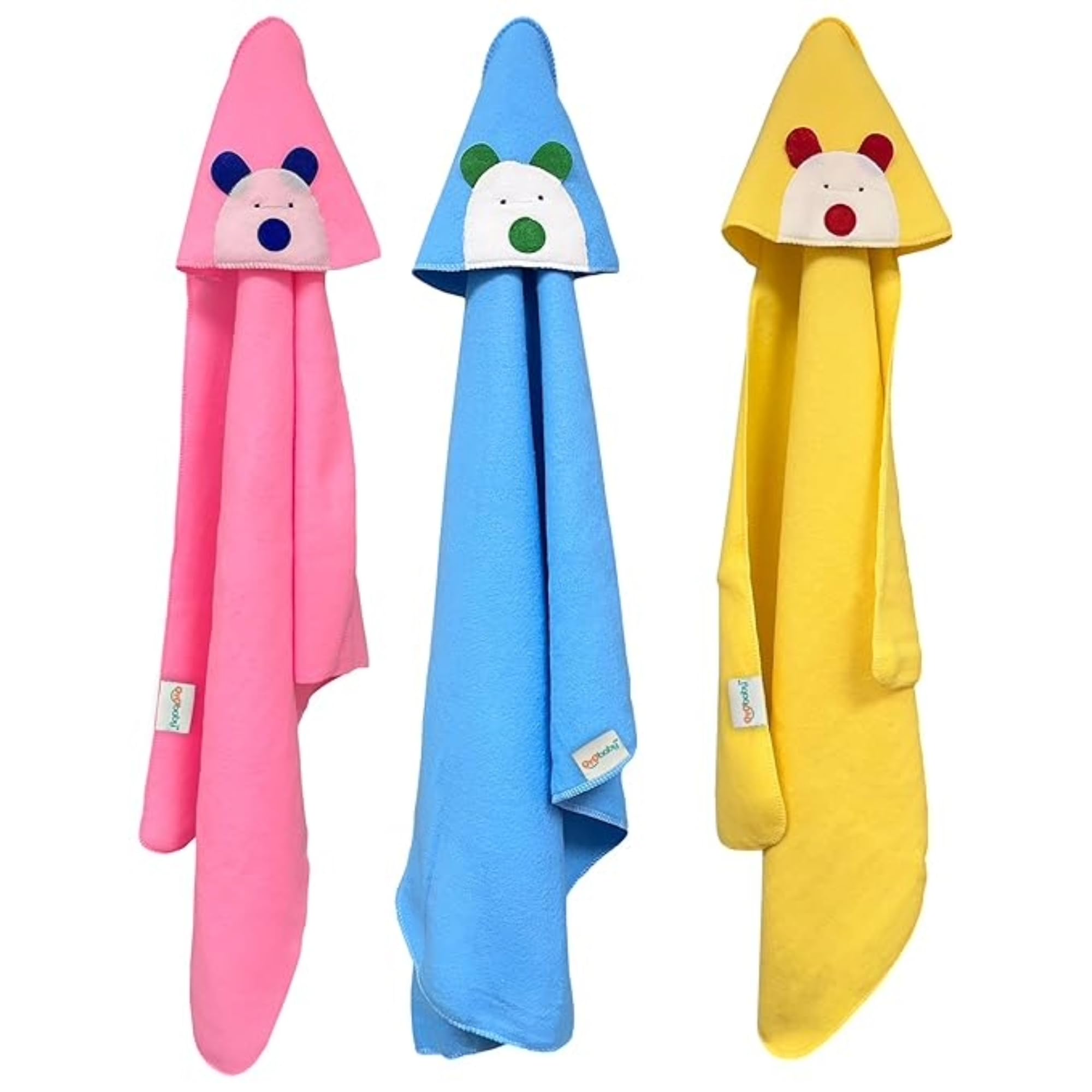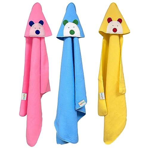 OYO BABY Premium Hooded Cum Wrapping Blanket for Baby Boys or Girls (0 to 24 Months Pack of 3 Pink + Blue + Yellow)