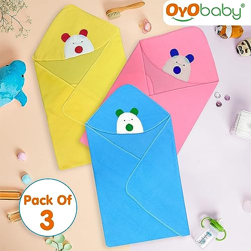 OYO BABY Hooded Baby Blankets Combo Pack for Newborns - Soft and Cozy Wrappers for Baby Boys & Girls (Pack of 3)