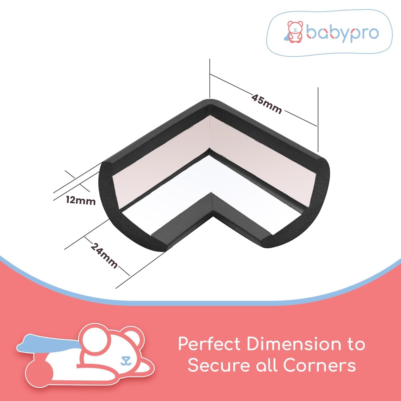 BabyPro BabyProofing Corner Guards with (12mm Pack of 8) Strong Adhesive Tape by Certified Professional Childproofer for Covering Sharp Edges & Corners of Bed Table & Furniture (Black)