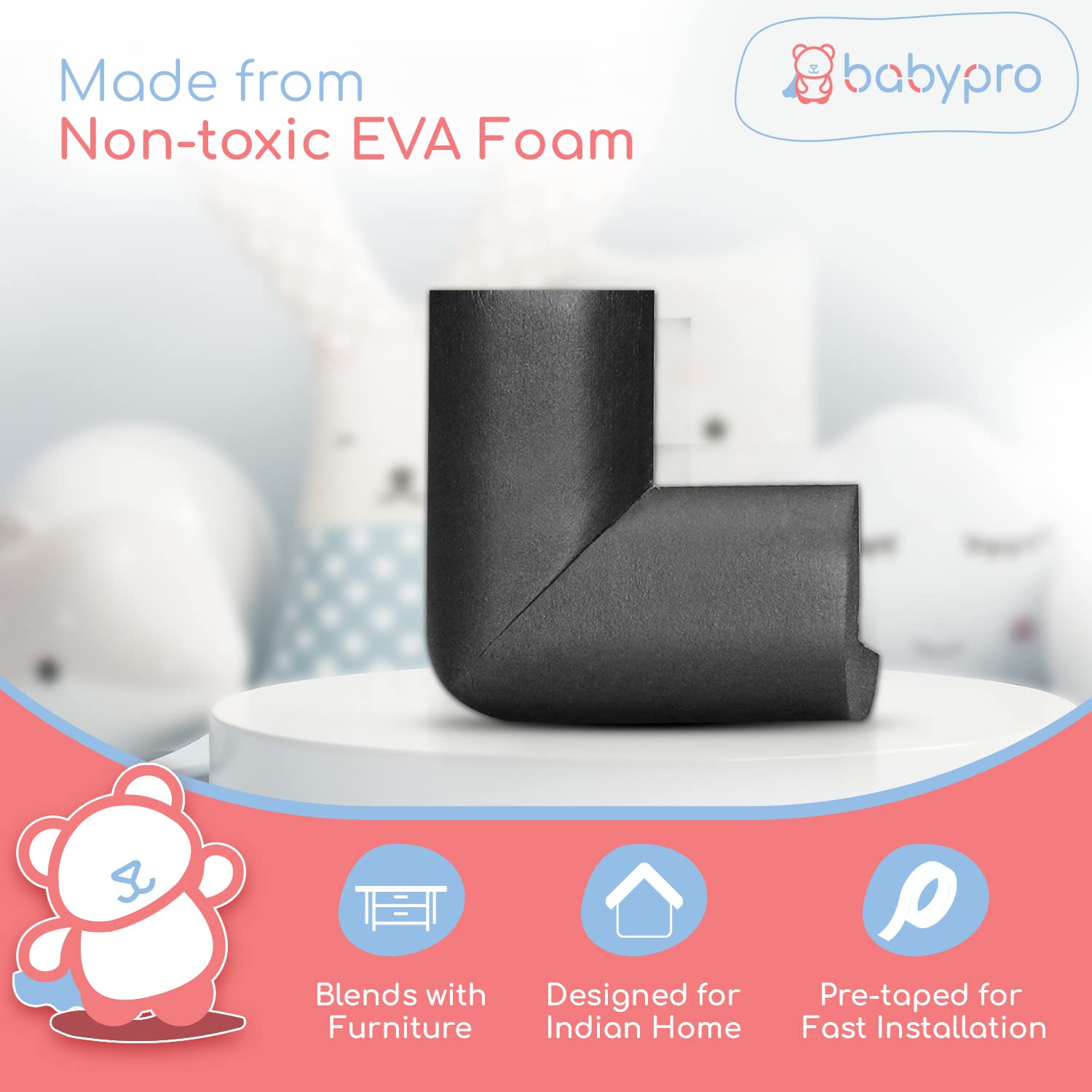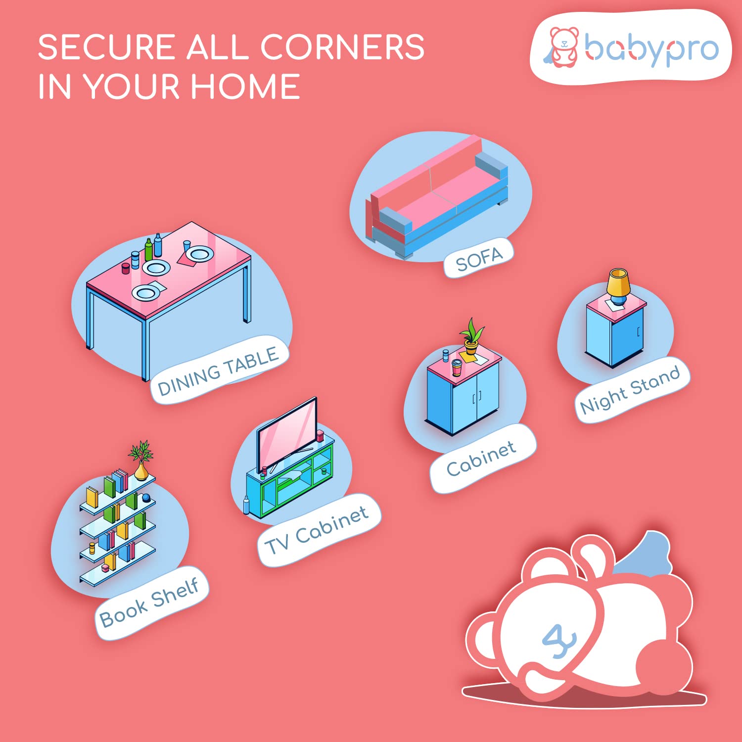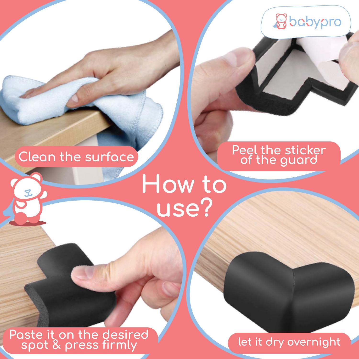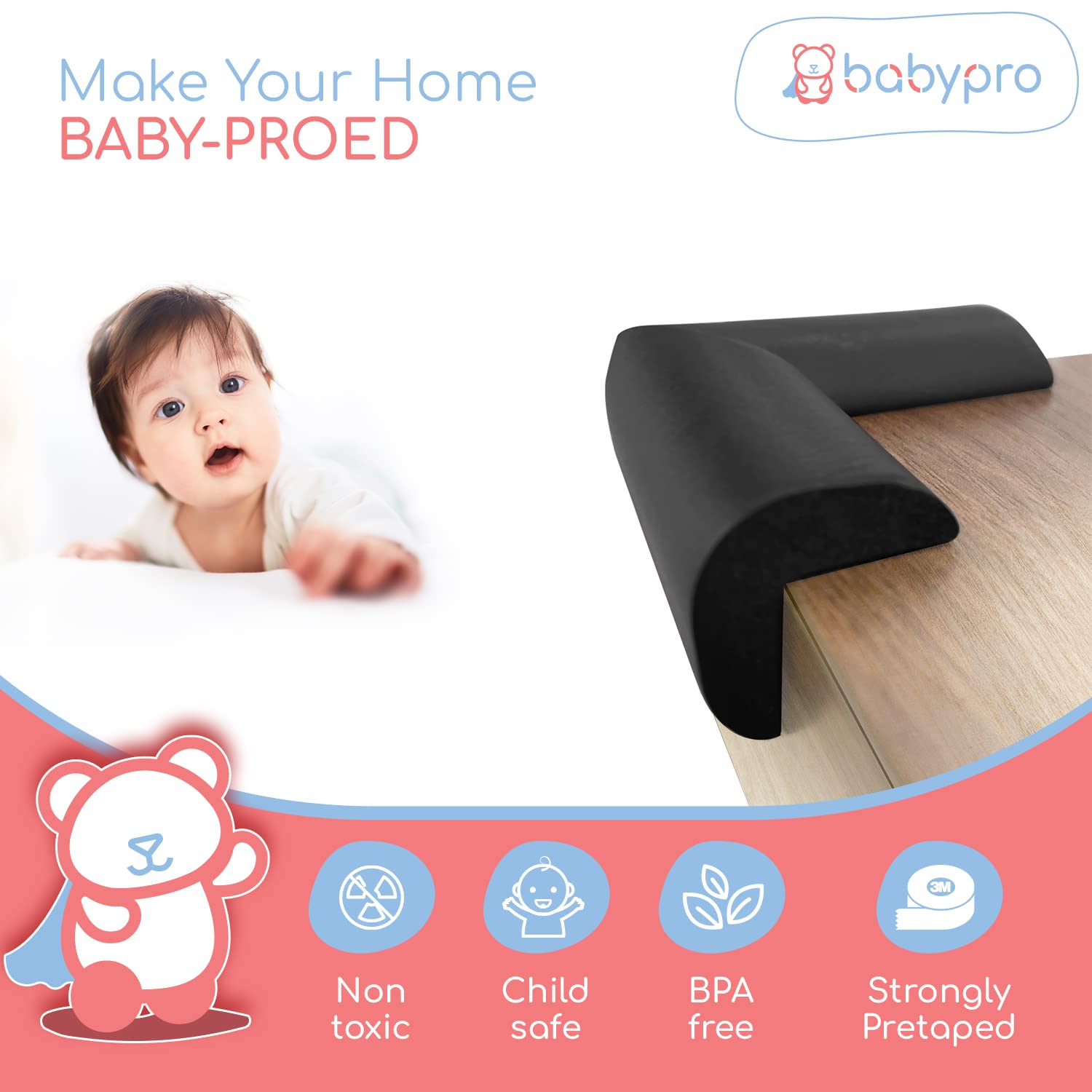 HomeBabyNurseryBaby SafetyBabyPro BabyProofing Corner Guards with (12mm Pack of 8) Strong Adhesive Tape by Certified Professional Childproofer for Covering Sharp Edges & Corners of Bed Table & Furniture (Black)