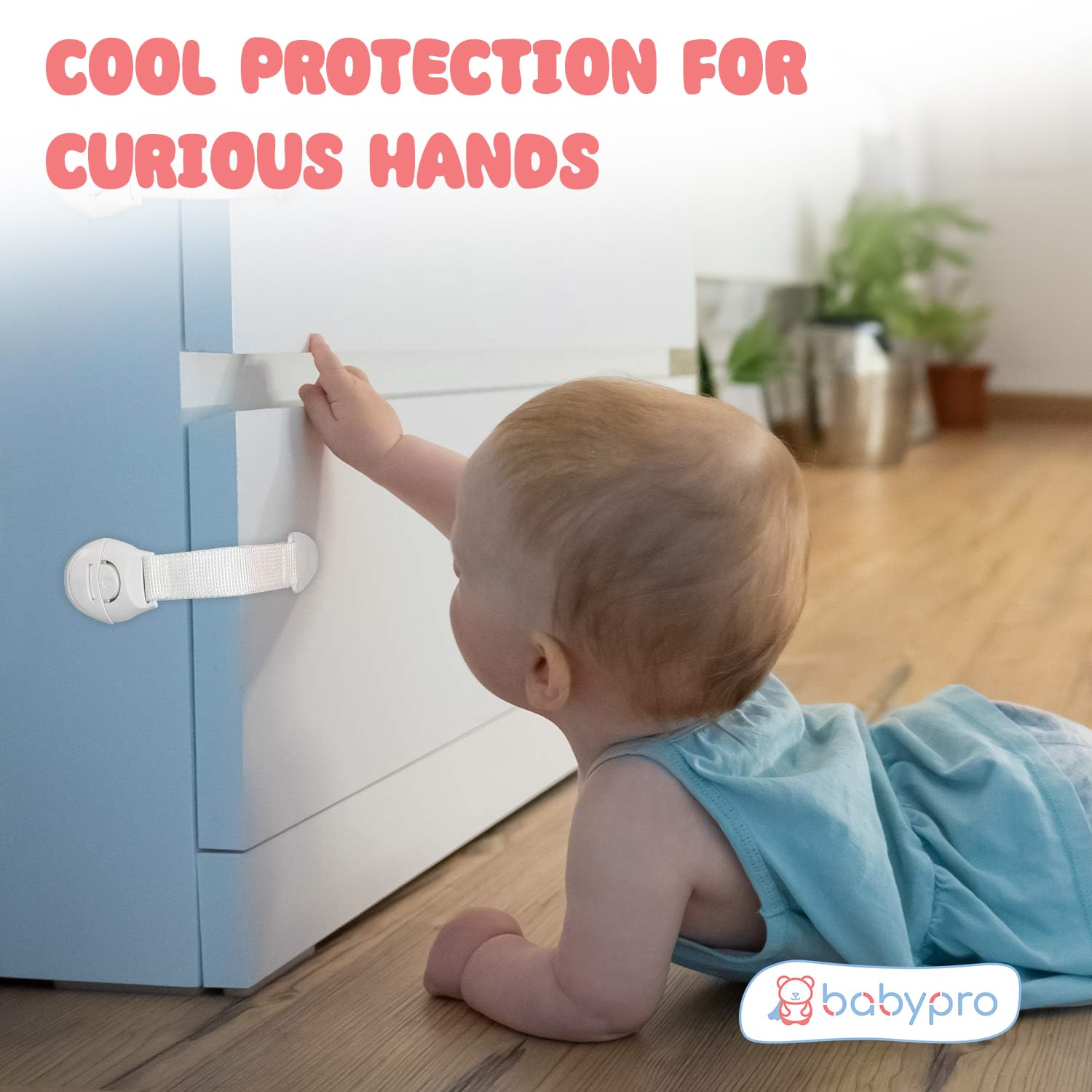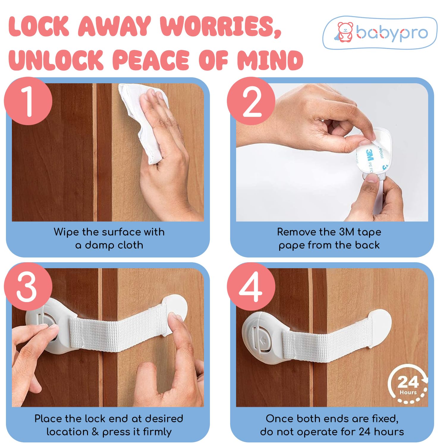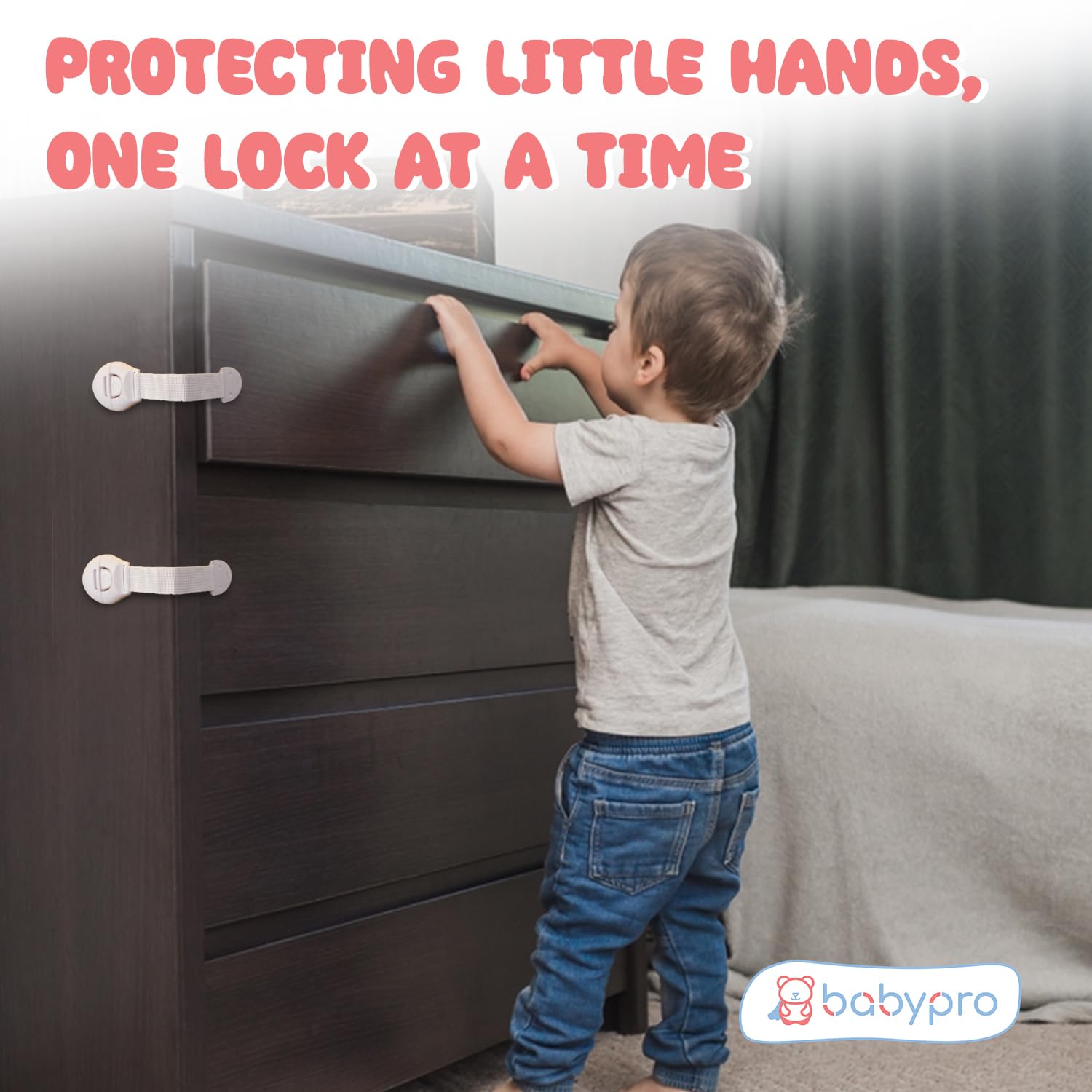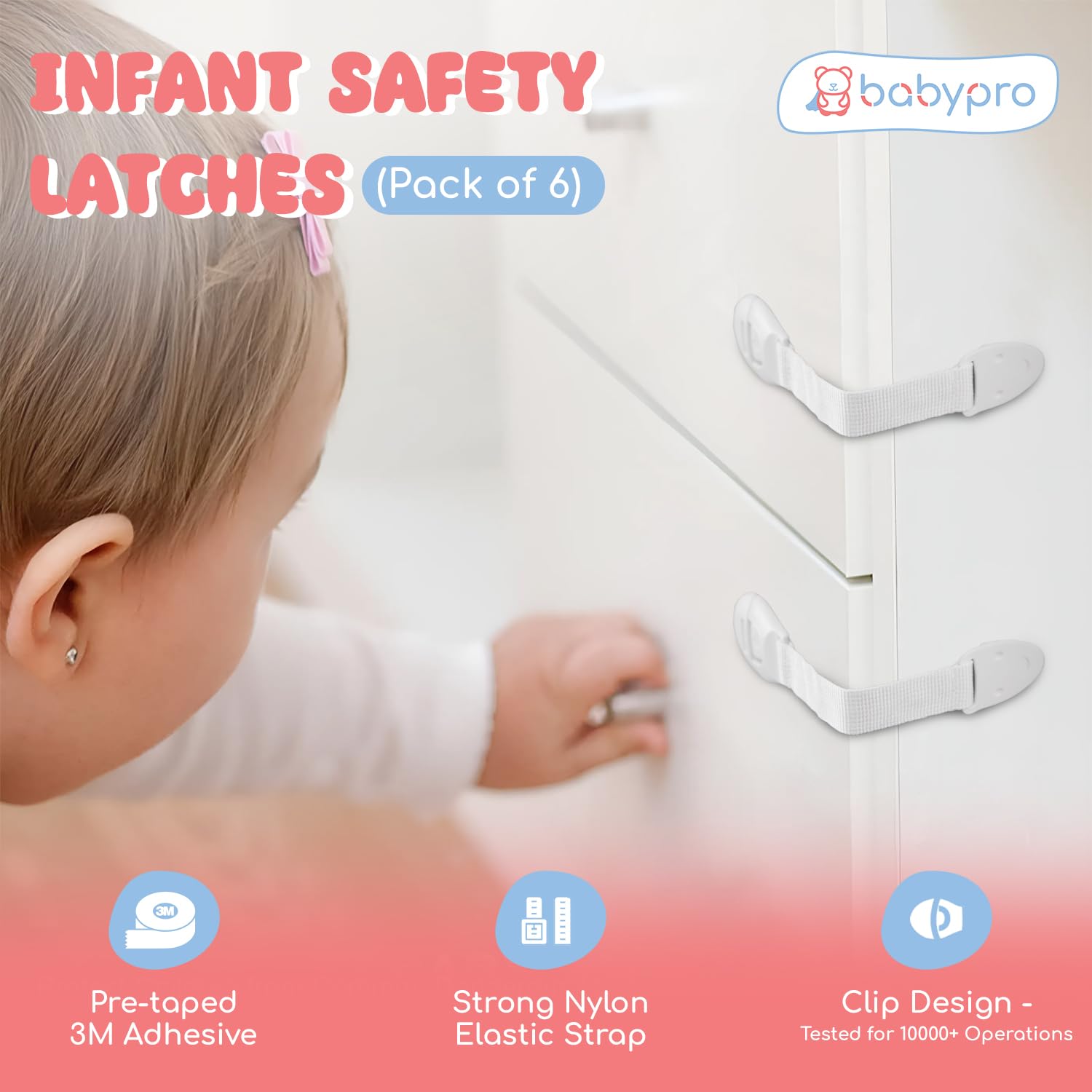 BabyPro (Pack of 6) Baby Infant Child Proofing Safety Locks Latches for Door Cupboard Cabinet Fridge Drawer Locks Toilet Seats Child Safety Cabinet Locks Child Proof Cabinet Latches (White)