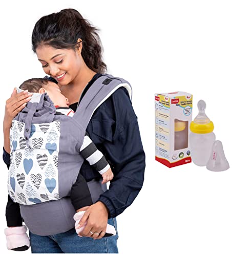 Luvlap Adore Baby Carrier with 3 carry positions for 6 to 24 months baby Max weight Up to 18 Kgs (Grey)Now take your baby outdoors without any hassle or worries in this convenient LuvLap Adore baby carrier. It is great for your baby to explore safely with you while feeling emotionally secure. Made of premium quality breathable fabric with multiple carrying positions and adjustable belts it ensures comfort for both baby and parent. Close carrying has been scientifically proven to help your baby grow up to be secure intelligent family oriented and happy. So whether it is to do small chores or to meet friends you can take your baby out with you every time.LuvLap Feeding Spoon with Squeezy food Grade Silicone Feeder bottle For Infant Baby 180ml BPA Free YellowSoft silicone food feeding bottle with spoon can be used to feed puries juice milk or water to babies. Helps in easy transition. Effortless one hand feeding. Extra soft silicone spoon protects baby's teeth. Dust cover to maintain hygiene.