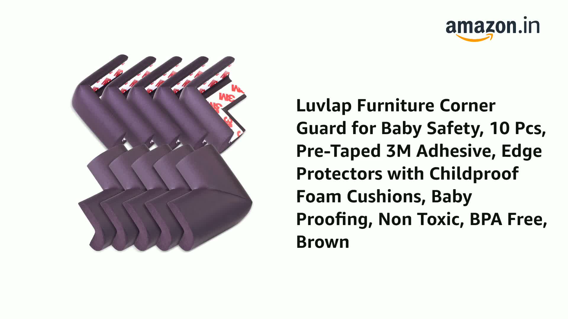 LuvLap range of Baby safety items ensure your baby is safe from all possible dangers and ensures your peace of mind. The LuvLap Furniture Corner Guard Set keeps babies safe by preventing them from getting injured from sharp corners of furniture. It can be easily applied and removed leaves no traces and doesn't damage the furniture. This high quality product is fashionable durable non toxic and safe. It keeps cabinets drawers and cupboard baby safe. The Adhesive pads make them firm. The design blends well with furniture. Does not become sticky with prolonged use even in extremely hot weather. Babyproof your home effortlessly