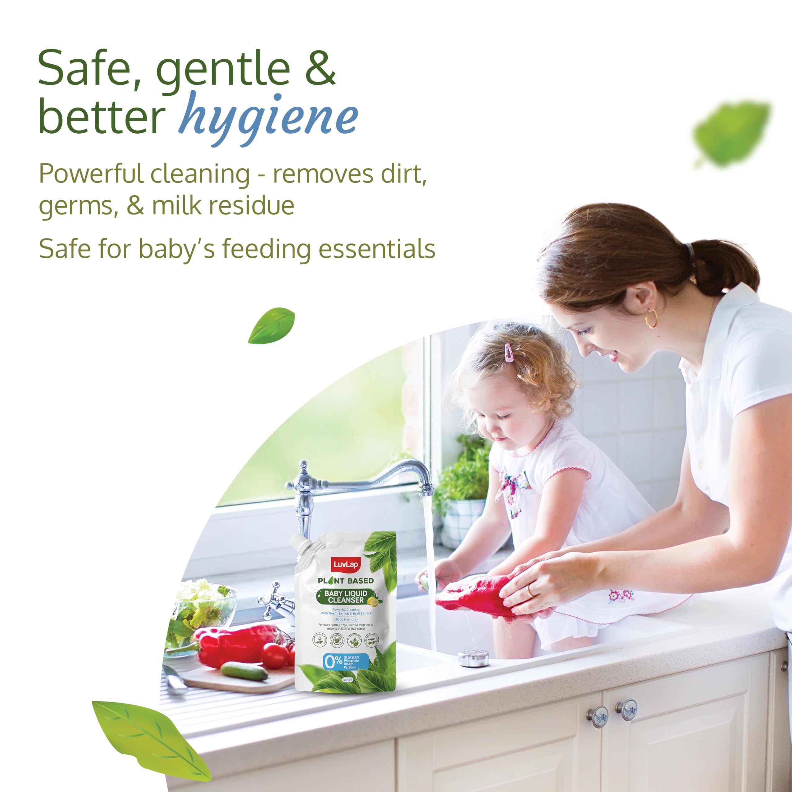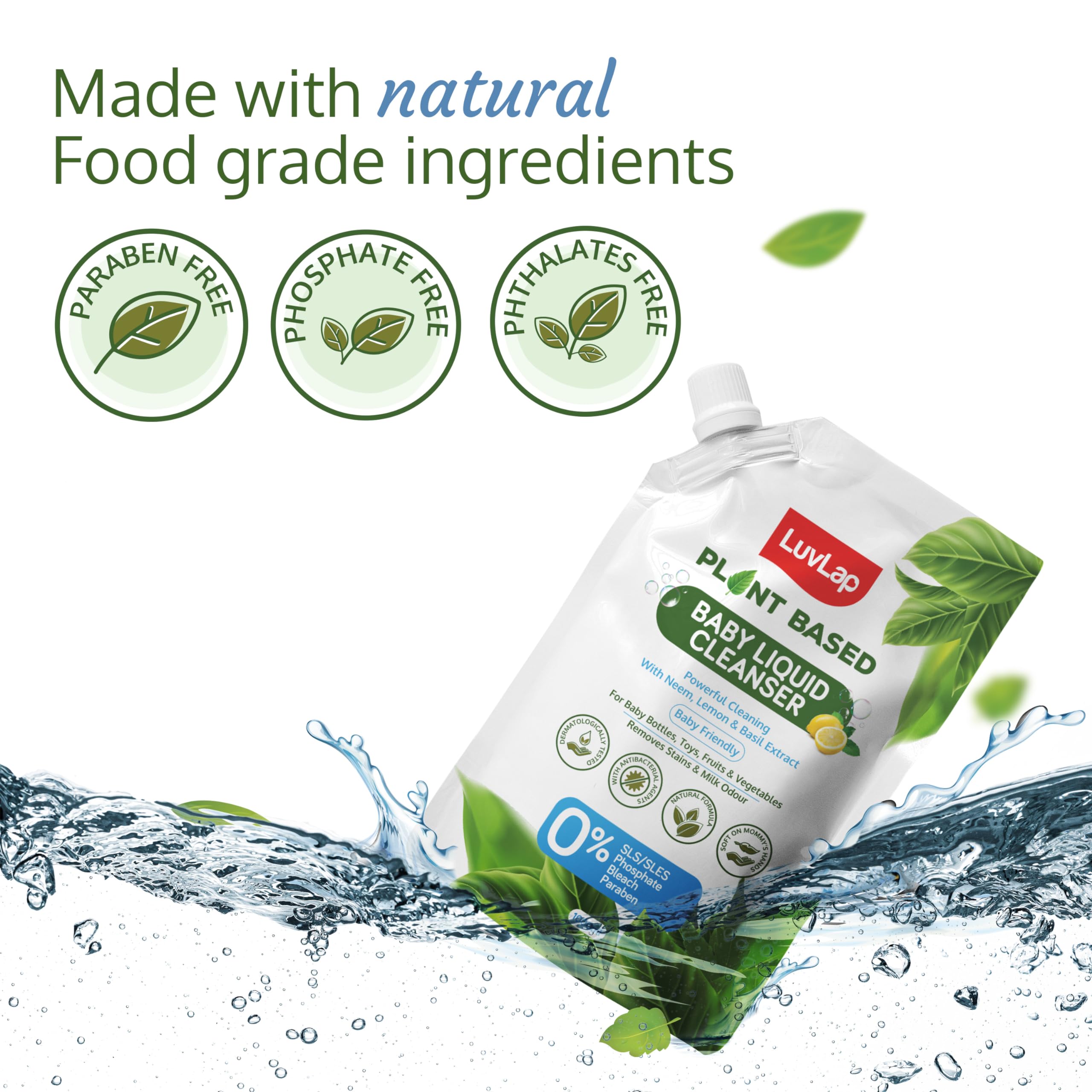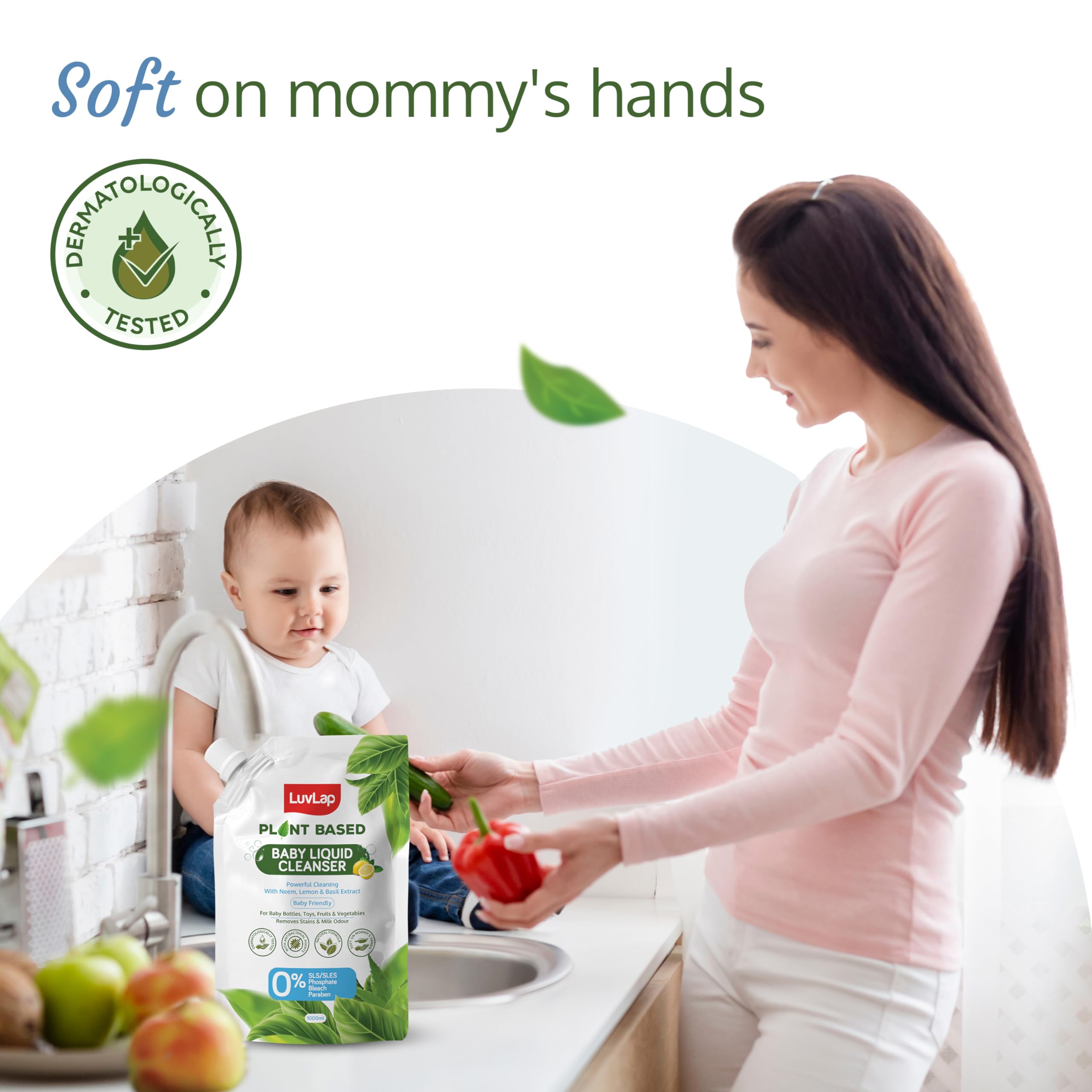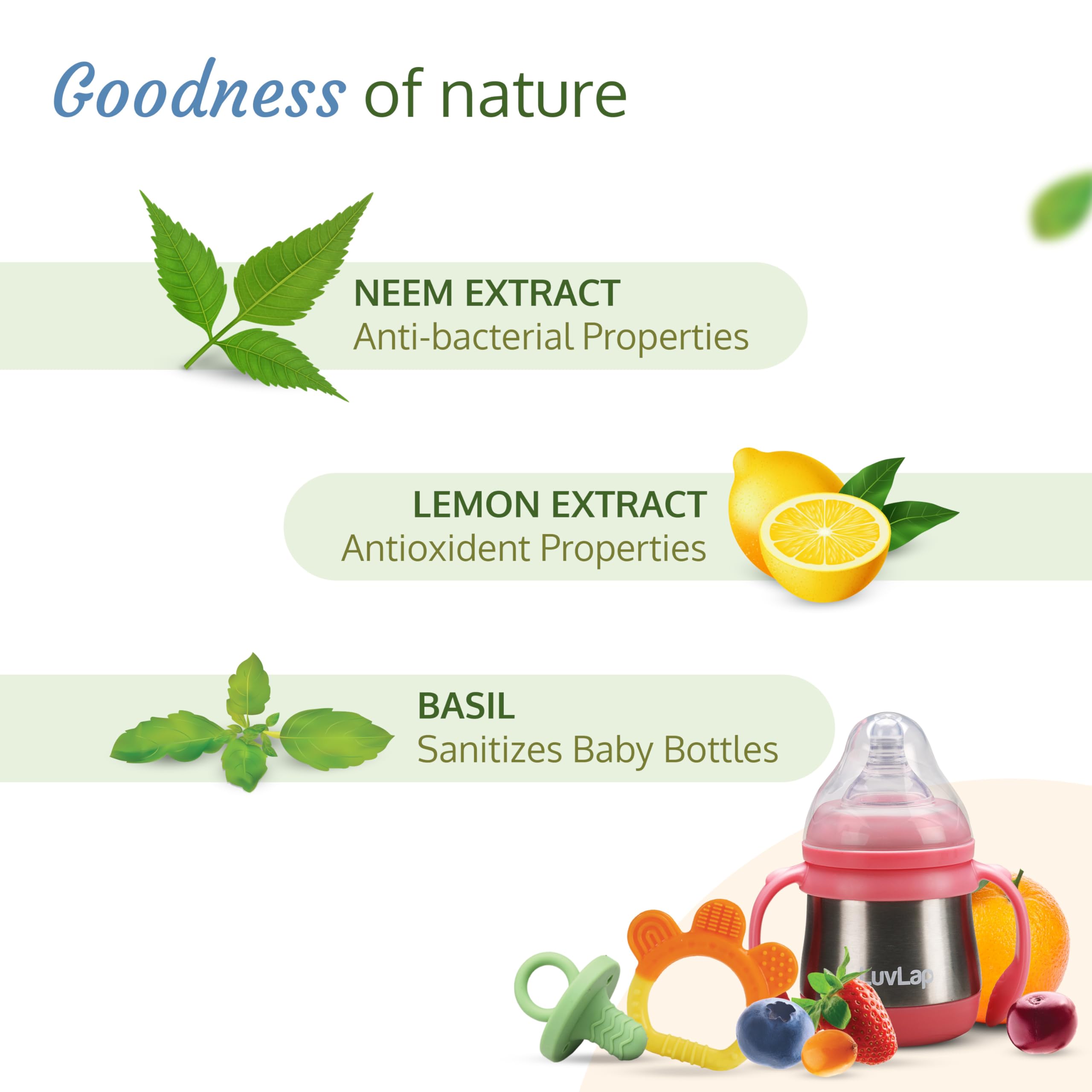 Hello Mommies experience pure plant powered cleanliness with Luvtap Plant Based Baby Liquid Cleanser Enriched with Neem & Lemon Extract and Basil. It effortlessly banishes bacteria eliminates stains and odour from baby essentials. Better hygiene makes your baby happy and you happier