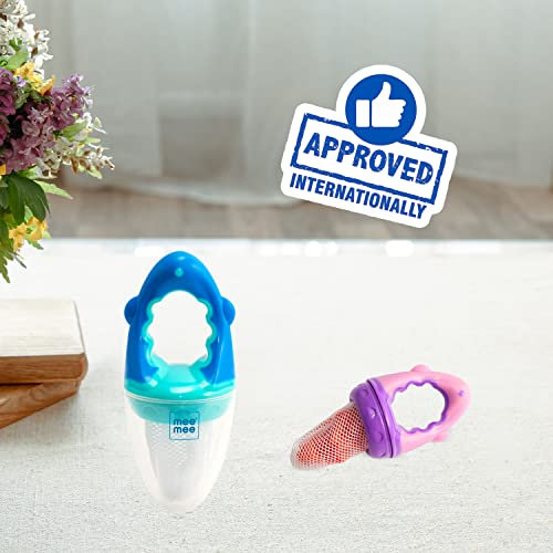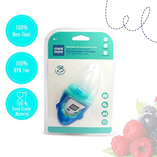 Mee Mee Advanced Fruit & Food Nutritional Feeder with Feed Pusher | BPA Free | Baby Grip Feeder to Push Food (Dark & Light Blue)