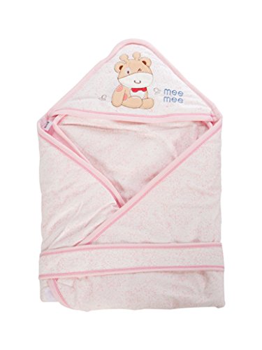 Mee Mee 100% Soft Cotton Hooded Baby Wrapper Cum Warmer, Blanket with Hood for New Born Baby 0 to 6 Months (Pink-Animal Print Patch)