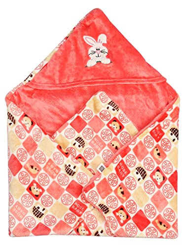 Mee Mee 100% Soft Cotton Hooded Baby Wrapper Cum Warmer, Blanket with Hood for New Born Baby 0 to 6 Months (Pink Printed)