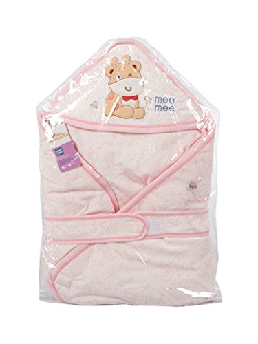 HomeBabyNurseryBaby SafetyMee Mee 100% Soft Cotton Hooded Baby Wrapper Cum Warmer, Blanket with Hood for New Born Baby 0 to 6 Months (Pink-Animal Print Patch)