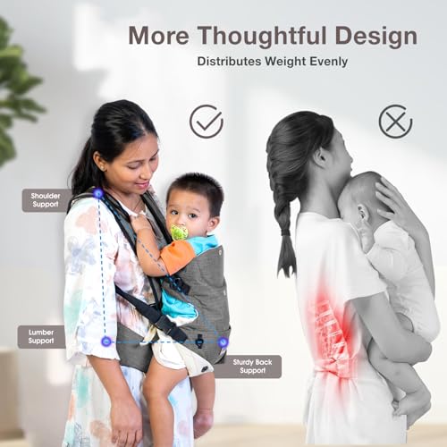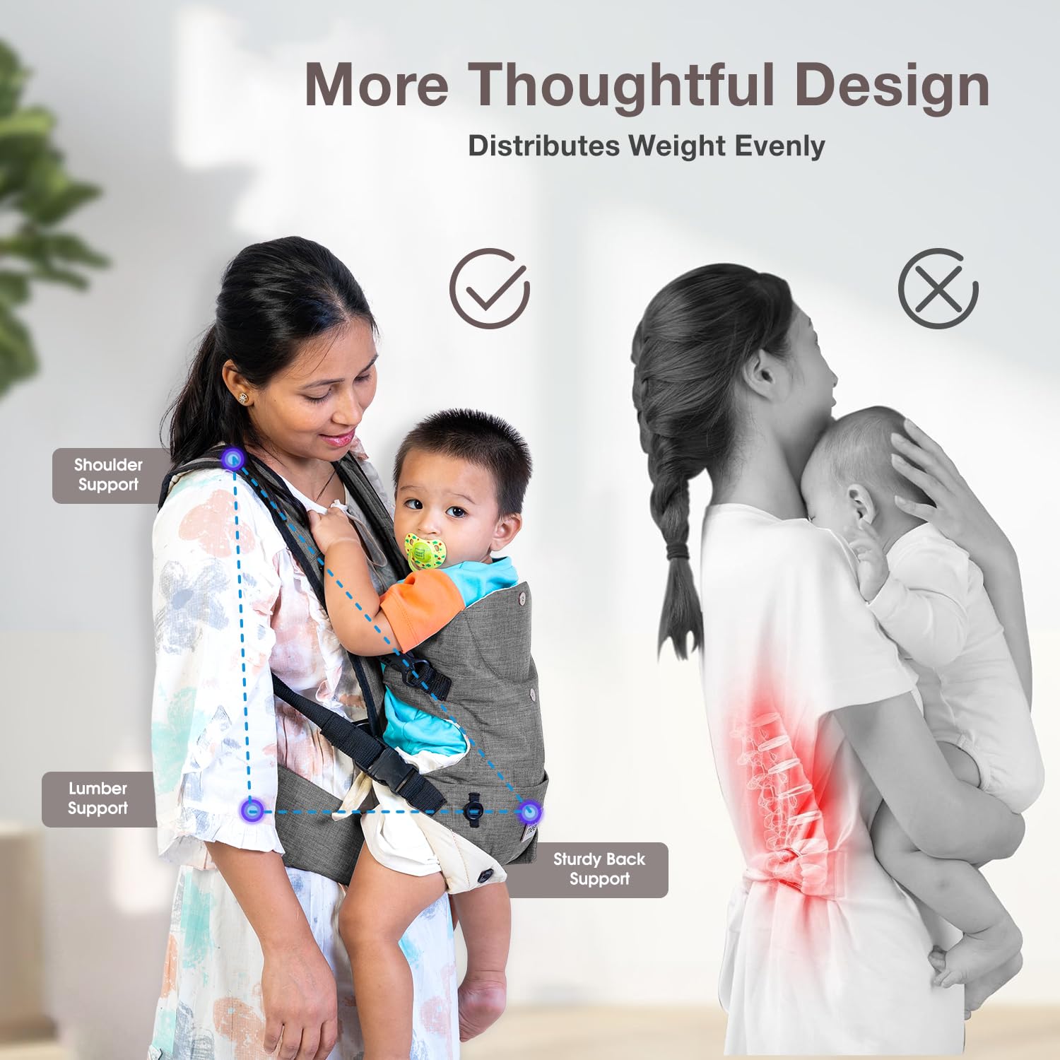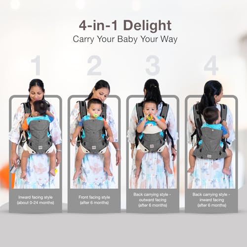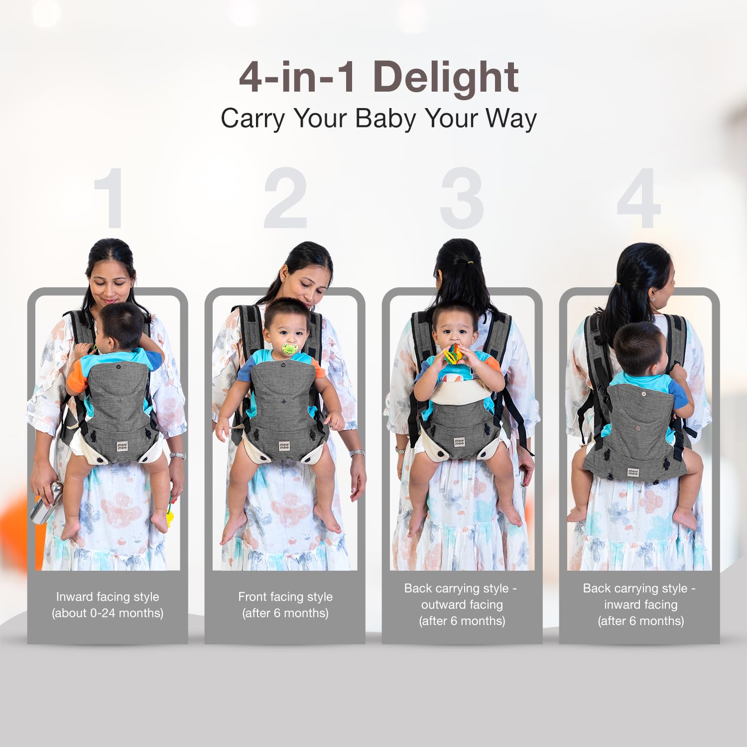 Designed to accommodate as many as 4 positions for carrying your tiny tot - front facing and back facing positions and front facing and back facing back carrying positions