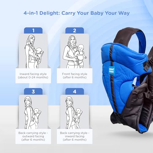 HomeBabyNurseryBaby SafetyMee Mee Comfy New Born Baby Carrier With 4 Baby carrying Modes Lightweight & Adjustable | Neck Support Baby Sling Carrier with Padded waist Support and shoulder support straps / safety buckle for 0 to 2 Years (Royal Blue)