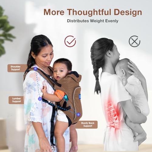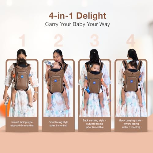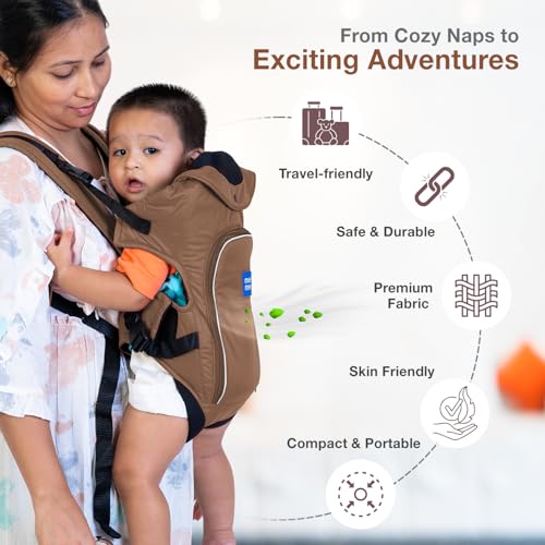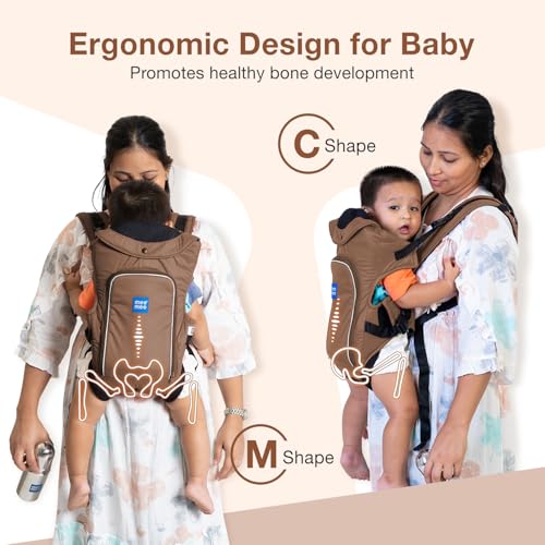 HomeBabyNurseryBaby SafetyMee Mee Comfy New Born Baby Carrier With 4 Baby carrying Modes Lightweight & Adjustable | Neck Support Baby Sling Carrier with Padded waist Support and shoulder support straps | safety buckle for 0 to 2 Years (Brown)