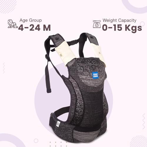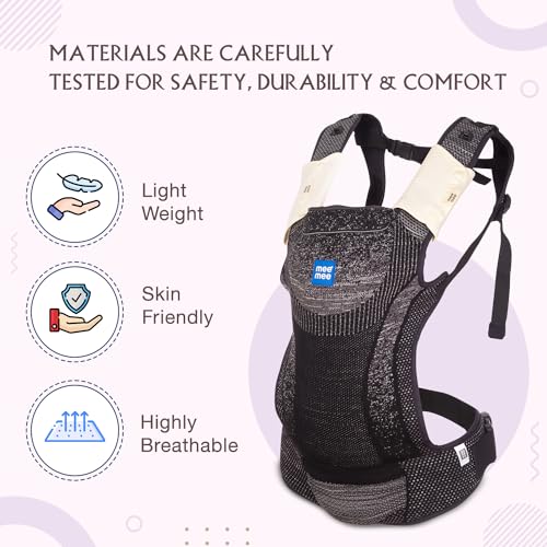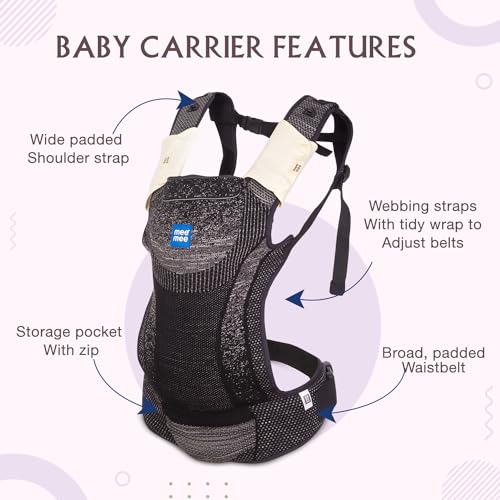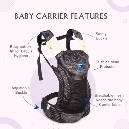 HomeBabyNurseryBaby SafetyMee Mee Comfy New Born Baby Carrier With 4 Baby carrying Modes Lightweight & Adjustable | Neck Support Baby Sling Carrier with Padded waist Support and shoulder support straps | safety buckle And Detachable Hip Seat for 0 to 2 Years (Black)