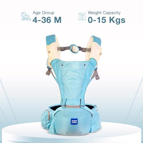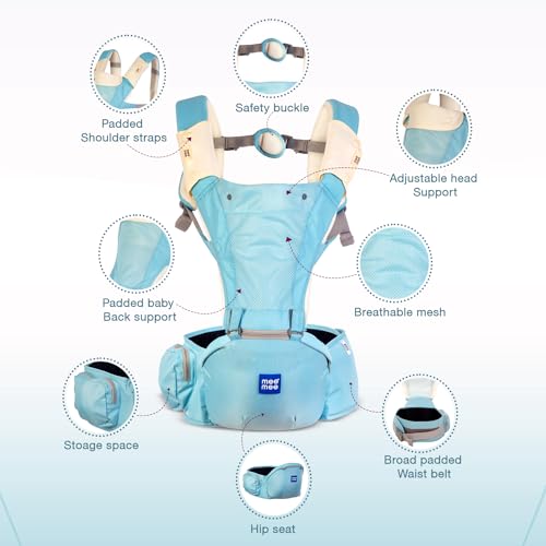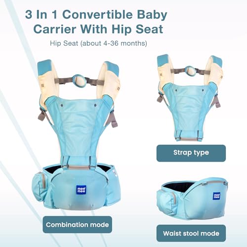 HomeBabyNurseryBaby SafetyMee Mee Comfy New Born Baby Carrier With 6 Baby carrying Modes Lightweight & Adjustable | Neck Support Baby Sling Carrier with Padded waist Support and shoulder support straps | safety buckle And Detachable Hip Seat for 0 to 3 Years (Blue)