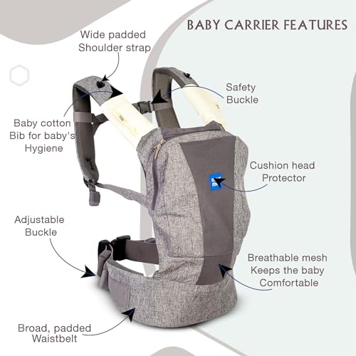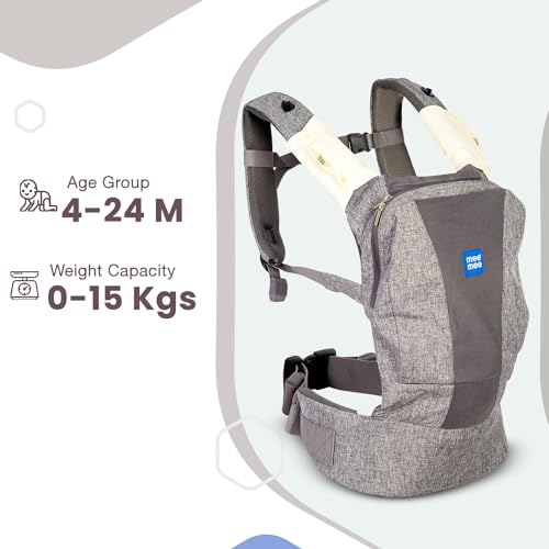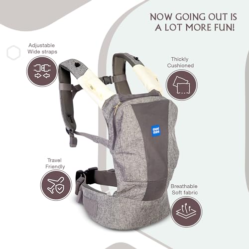 HomeBabyNurseryBaby SafetyMee Mee Comfy New Born Baby Carrier With 4 Baby carrying Modes Lightweight & Adjustable | Neck Support Baby Sling Carrier with Padded waist Support and shoulder support straps | safety buckle And Detachable Hip Seat for 0 to 2 Years (Grey)