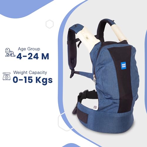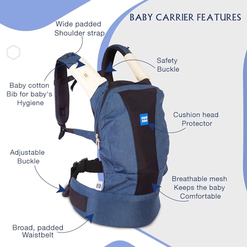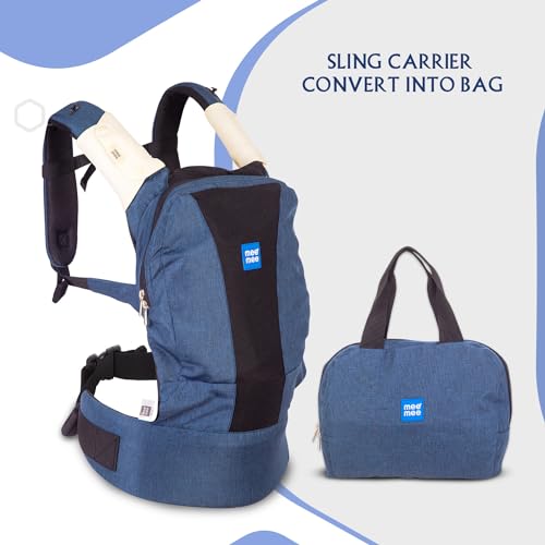 HomeBabyNurseryBaby SafetyMee Mee Comfy New Born Baby Carrier With 4 Baby carrying Modes Lightweight & Adjustable | Neck Support Baby Sling Carrier with Padded waist Support and shoulder support straps | safety buckle And Detachable Hip Seat for 0 to 2 Years (Navy Blue)