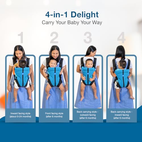 HomeBabyNurseryBaby SafetyMee Mee Comfy New Born Baby Carrier With 4 Baby carrying Modes Lightweight & Adjustable | Neck Support Baby Sling Carrier with Padded waist Support and shoulder support straps | safety buckle for 0 to 2 Years (Blue)