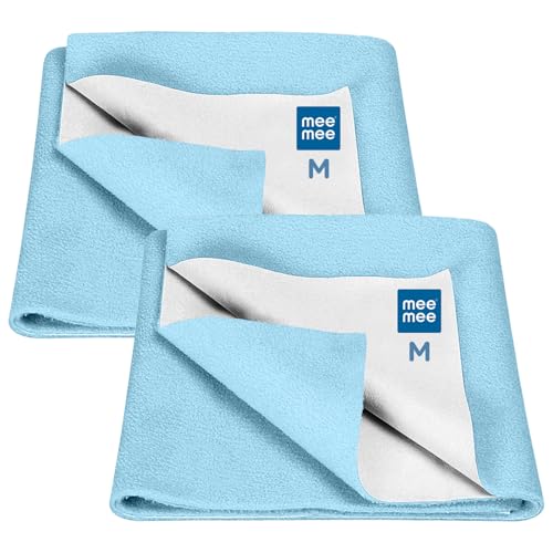 HomeBabyNurseryBaby SafetyMee Mee Reusable Water Proof Cotton Bed Protector Sheet/Extra Absorbent Mat/Dry Sheets/Urine Sheet/Dry Mat Pack of 2 (70CmX100Cm) (Medium, Blue)