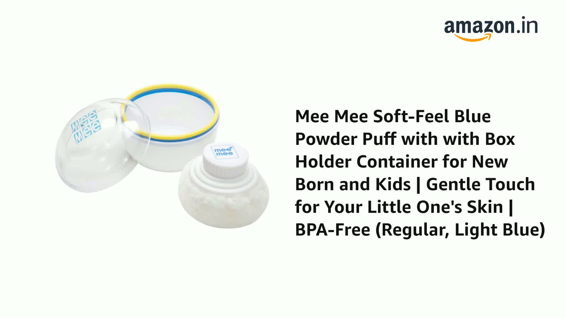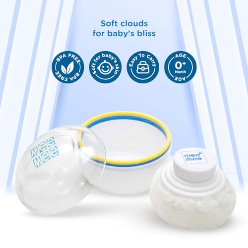 HomeBabyNurseryBaby SafetyMee Mee Soft-Feel Blue Powder Puff with with Box Holder Container for New Born and Kids | Gentle Touch for Your Little One's Skin | BPA-Free (Regular, Light Blue)