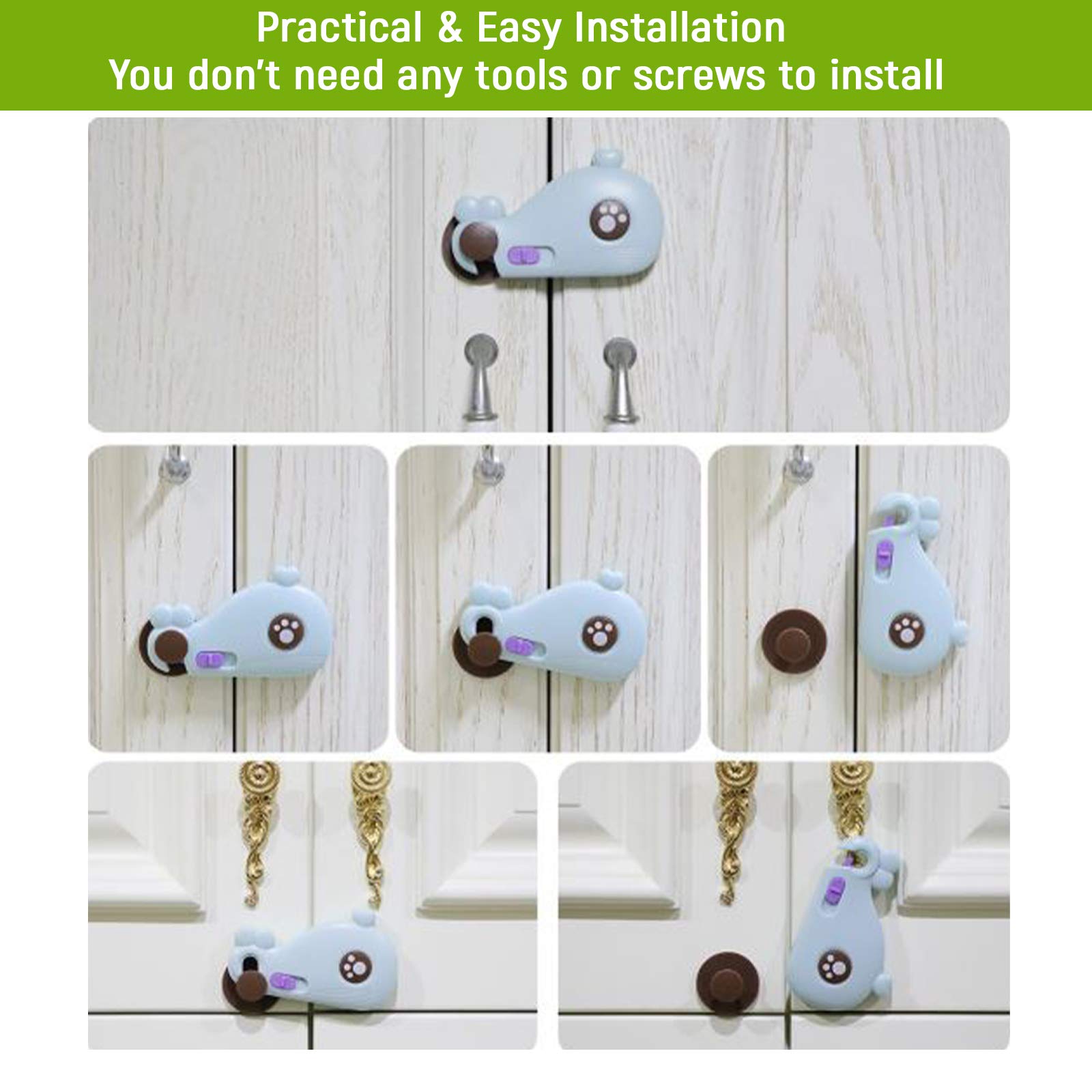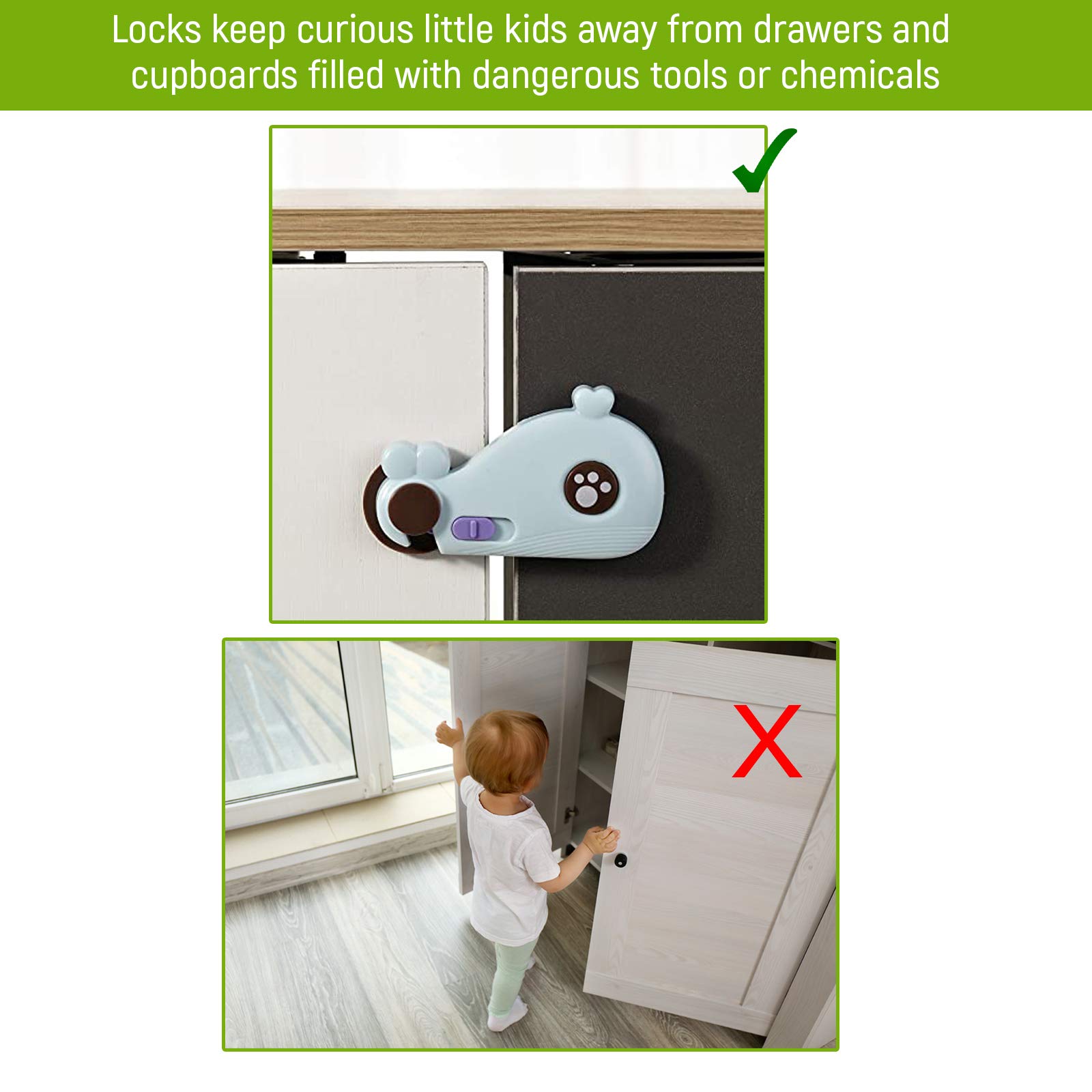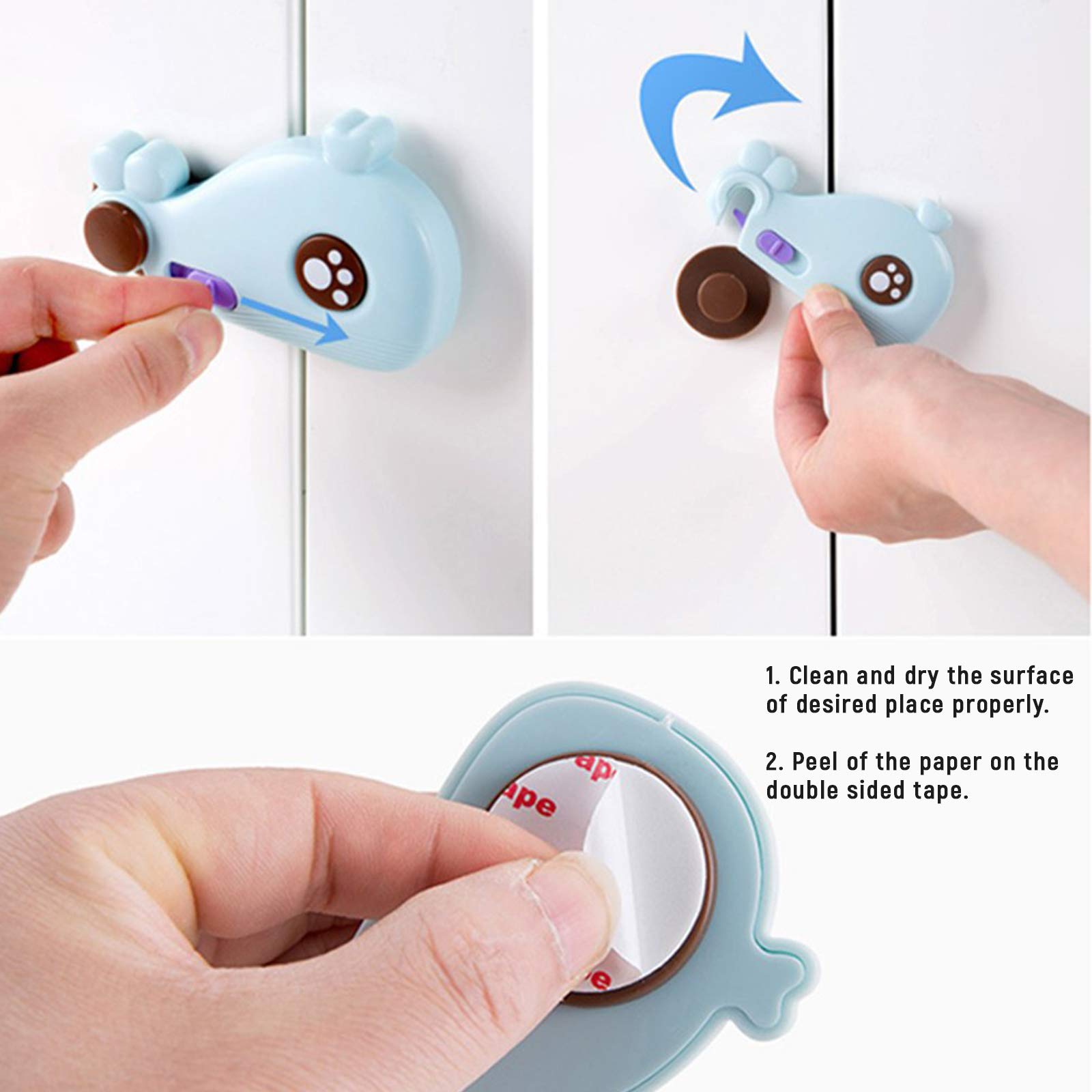 Safe-O-Kid 2 Drawer/Cabinet Locks - Child Safety for Chesters Almiras Baby Proofing - Indoor Safety Whale Shaped Blue Pack of 2