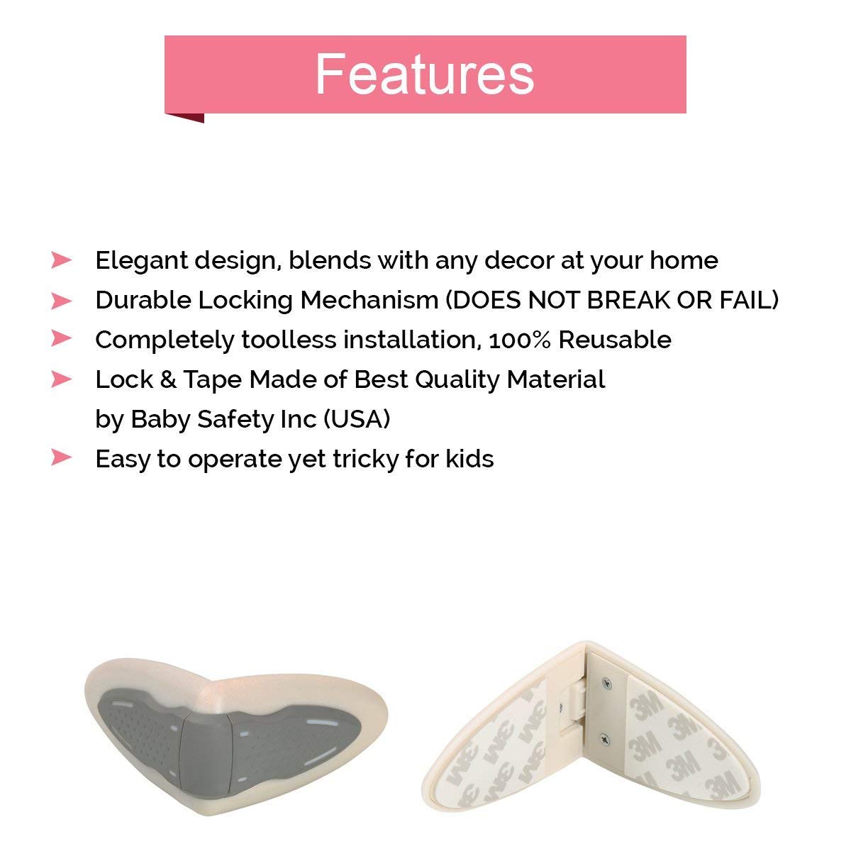 Safe O Kid Durable Elegant 100% Kid Safe Drawer Lock for Kids Grey Pack of 4