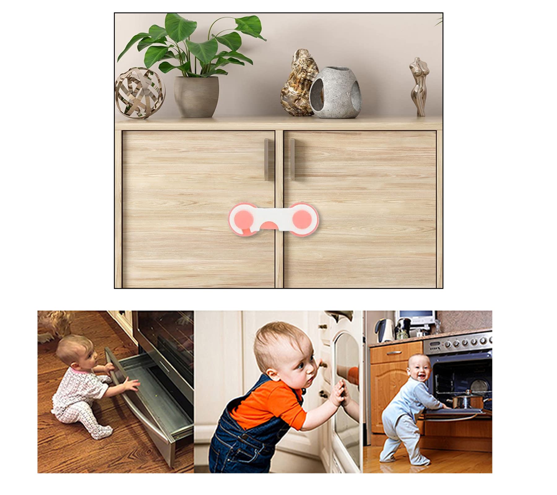 Safe-O-Kid Pack of 1 - Finger Injury Safety-Durable Child Safety Cabinet/Almirah Lock- Pink