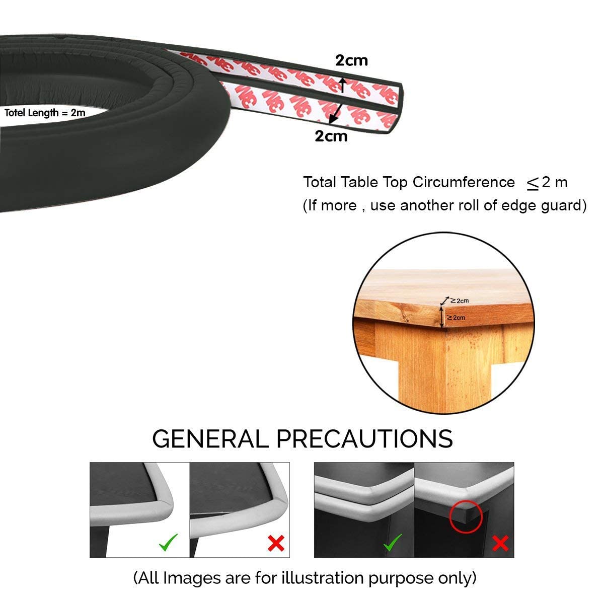 Safe-O-Kid (Set of 1) Soft Cushioned 16.4 Ft / 5 Mtr Medium Edge Guard with Strong 3M Adhesive Safety for Sharp Edges for Babies- Black
