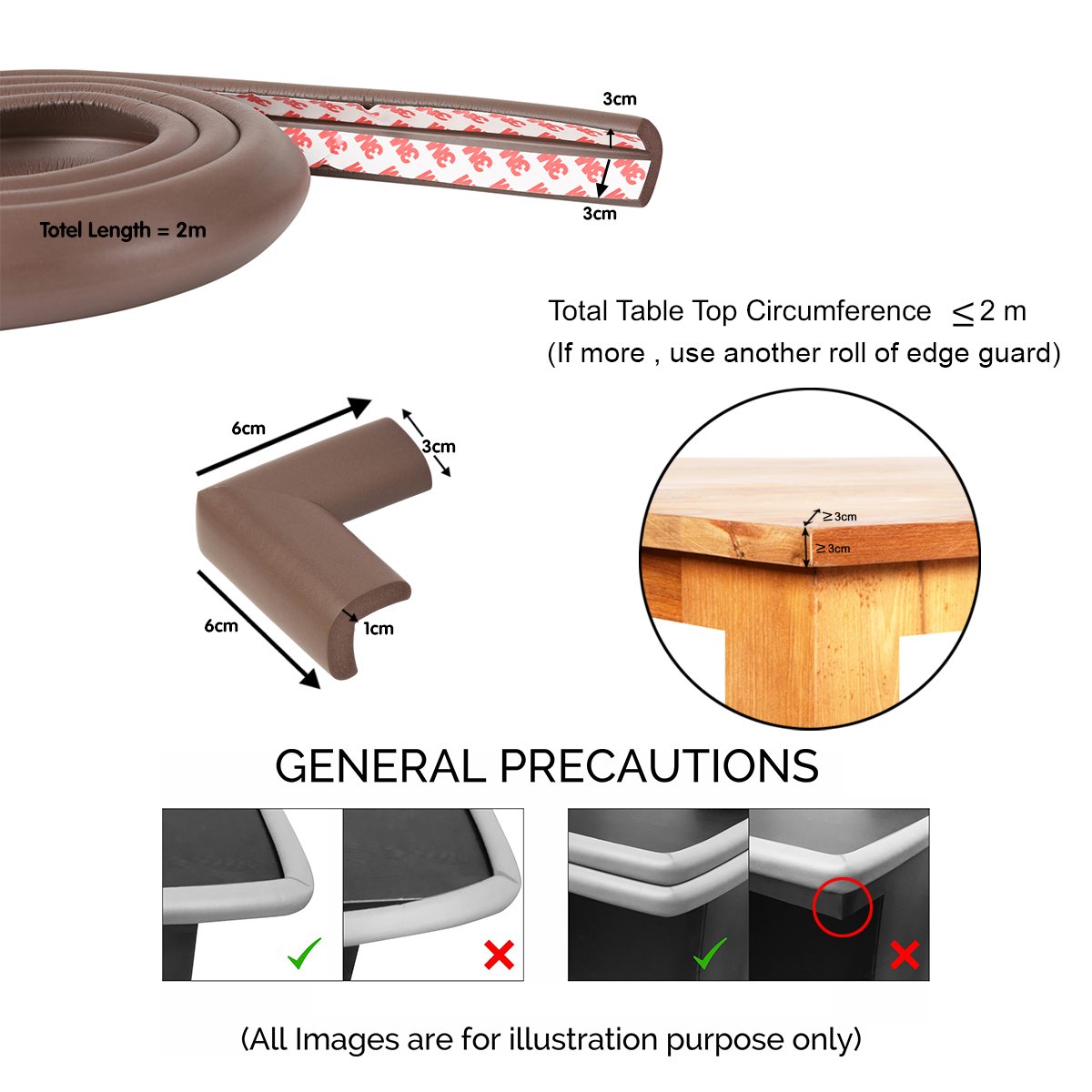 Installation 1. Clean the sharp surface as well as Safe-o-Kids edge Cushions inner surfaces using any ordinary home cleaning solution. Wipe it dry. 2. Peel off the yellow backing layer of the double-sided tape provided with the edge Cushion. 4. Apply the tape to both inner surfaces of the edge cushion. 5. Remove the 3M backings from the surfaces of the edge cushion. 6. Carefully align the edge cushion so that it fits perfectly with the sharp surface without leaving any space. 7. Press tightly and hold the edge Cushion against the surface for at least one minute 8. Optionally apply an additional designer protection layer over the edge Cushion for additional strength life and aesthetics. To Remove: - Start Removing the edge Cushion carefully from any one of the edges. DO NOT Use any chemicals/ sharp tools. - Clean the surface with a wet cloth etc. as suitable