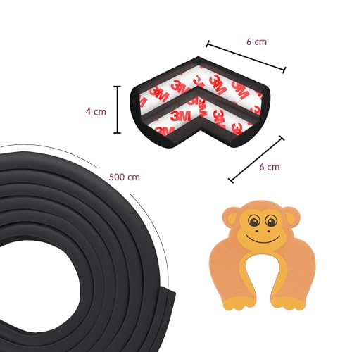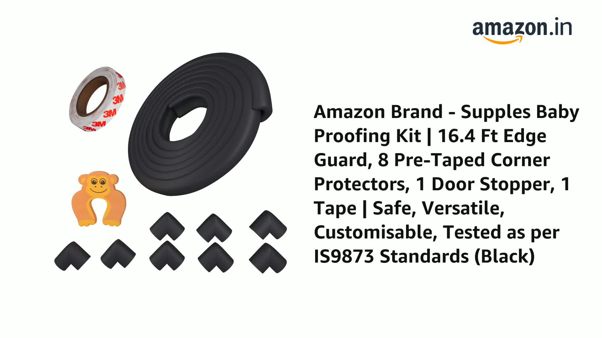 Protect your baby from sharp edges and corners with this babyproofing kit. It contains 1 16.4-foot edge guard 8 pre-taped corner protectors 1 door stopper and 1 double-sided easy-to-peel tape for the edge guard. These items may be used to babyproof the furniture in your home. All the contents of this kit are made from non-toxic eco-friendly baby-safe material tested according to IS 9873 safety standards. They are made to increase contact surface and absorb the impact when a baby falls against them. This babyproofing kit is convenient hassle-free and easy to install and use without the need for any tools.