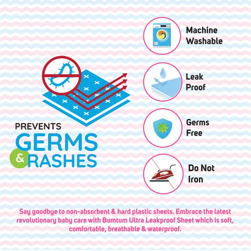 • FOR BABY HEALTHY COMFORT: Babies need care love and undisturbed sleep. Bumtum Ultra Leakproof Baby Sheet is specially curated for your baby. With this ultra leak proof sheet your baby will have a peaceful sleep.