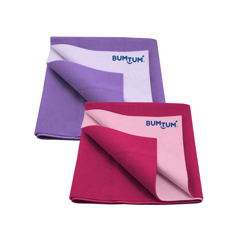 Bumtum Baby Dry Sheet Waterproof Quick Soft Fleece Baby Bed Protector | Anti - Bacterial & Odour Free | Extra Absorbant, Reuseable & Washable (Lilac + Hot Pink Combo, Medium Size, Pack of 2)